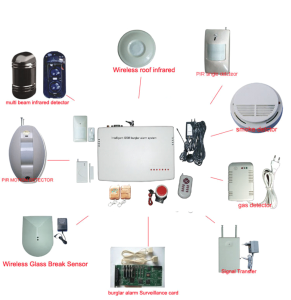 The Alarm System includes features of auto-dialing and auto-SMS (text message) to owner’s phone when alarm is triggered. It can pre-recorded voice message and playback on the phone, SMS notification when system is Disarmed/Armed, Home arm/Away arm, door bell, entrance/exit delay, smart zone…etc.